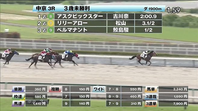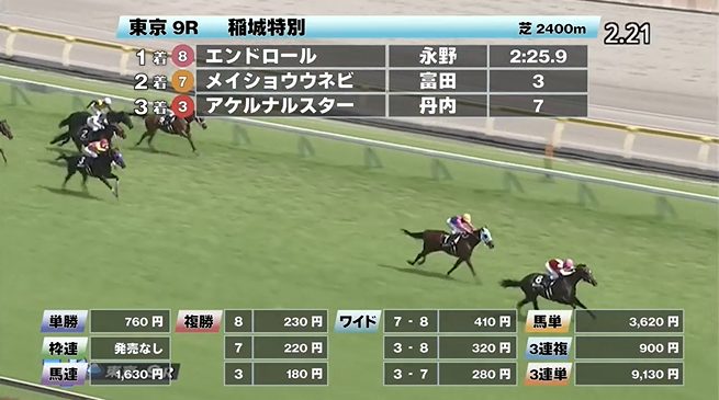 ◎エンドロール(4人気)1着 単勝760円、複勝230円