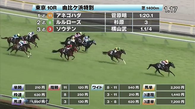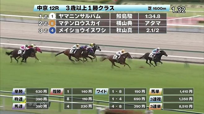 ここでは★ソングライン(4番人気)→★シュネルマイスター(2番人気)→◎サリオス(8番人気)の決着となり3連複は11,810円、3連単は64,140円の配当となりました。