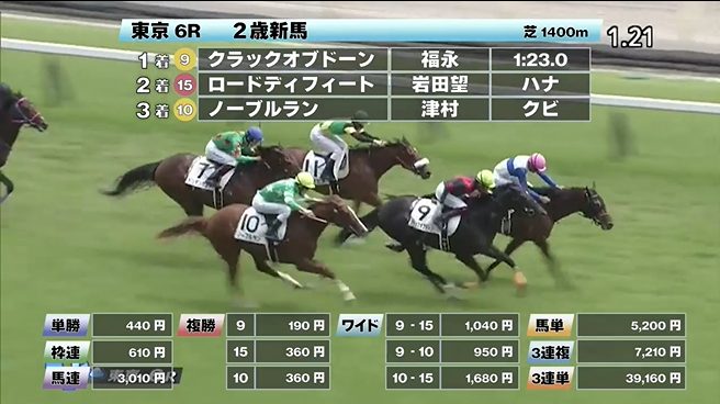◎ノーブルラン(6人気)3着 複勝360円 - 6/5【東京7R】3歳以上1勝クラス