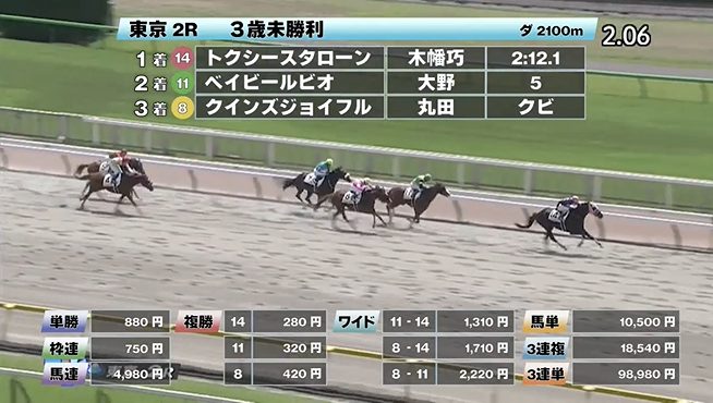◎ジョンソンテソーロ(3人気)1着 単勝530円、複勝210円 - 6/5【東京8R】3歳以上1勝クラス