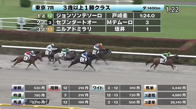 ◎ジョンソンテソーロ(3人気)1着 単勝530円、複勝210円