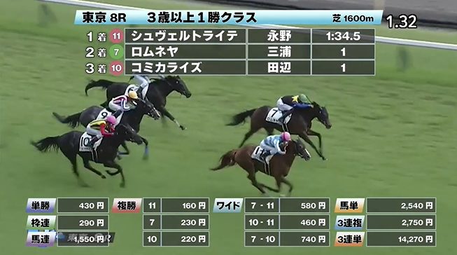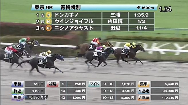 ◎ピュアブレンド(4人気)1着 単勝1,630円、複勝1,550円