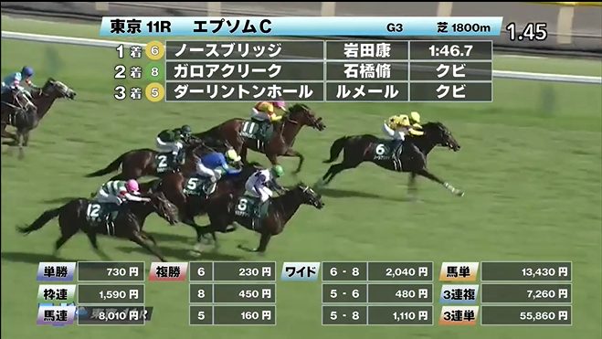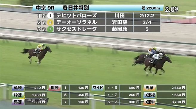 ◎エンドロール(4人気)1着 単勝760円、複勝230円