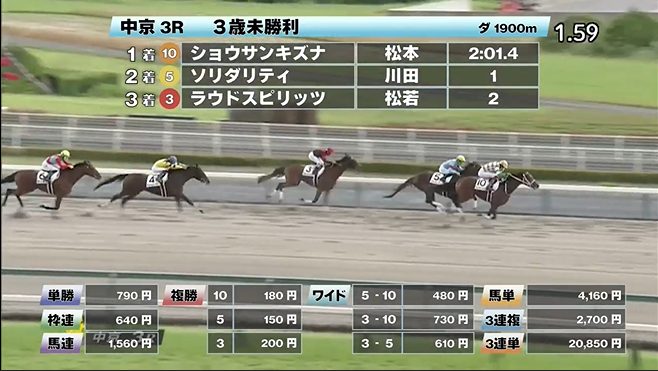 ◎ショウサンキズナ(6人気)1着 単勝790円、複勝180円