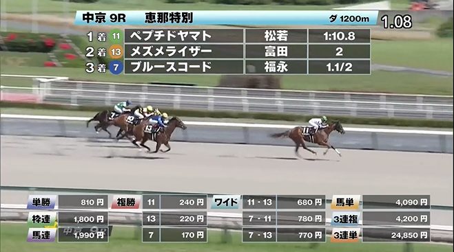 ◎ペプチドヤマト(5人気)1着 単勝810円、複勝240円