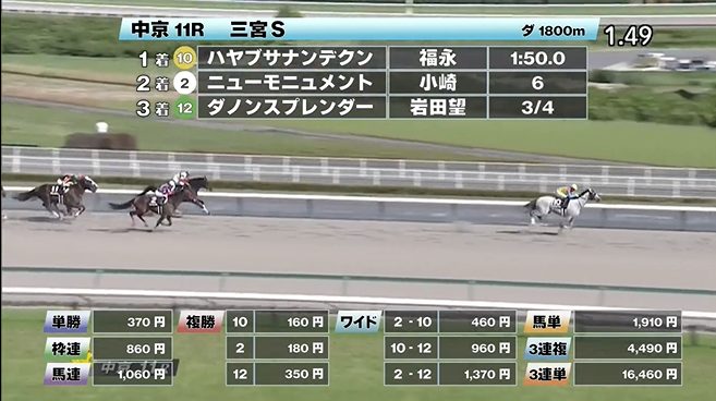 ◎ダノンスプレンダー(6人気)3着 複勝350円