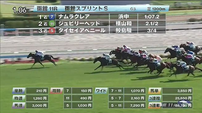 そんな中でも重賞ではエプソムカップでは◎ガロアクリーク(8番人気)2着、函館スプリントステークスでは◎タイセイアベニール(13番人気)3着とそれぞれで推奨した穴馬がしっかりと馬券内に好走してくれました。