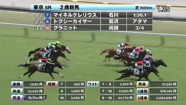 ◎マイネルケレリウス(5人気)1着 単勝1,020円、複勝320円