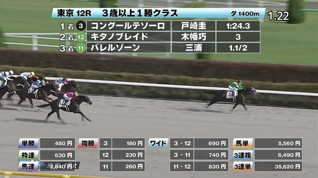 - 6/18【東京12R】3歳以上1勝クラス