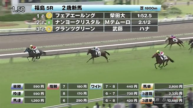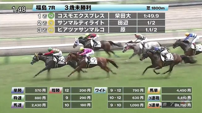 ◎マテンロウボイス(7人気)1着 単勝2,850円、複勝330円 - 7/10【福島4R】3歳未勝利