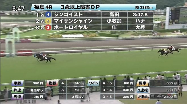 ◎アスティ(9人気)1着 単勝2,980円、複勝490円 - 7/16【福島1R】3歳以上障害未勝利