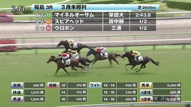 ◎マイネルオーサム(2人気)1着 単勝390円、複勝170円