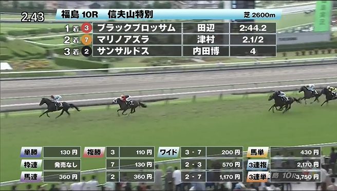 ◎ブレイクザアイス(2人気)1着 単勝410円、複勝130円 - 7/3【福島10R】さくらんぼ特別