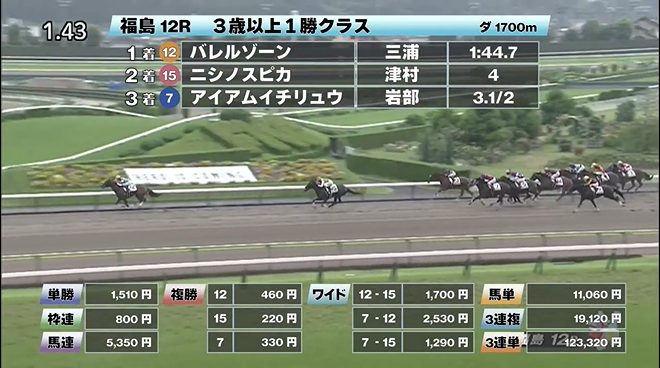 | 7/17 福島 | 12R | 5R | 41.7% |