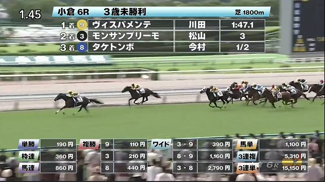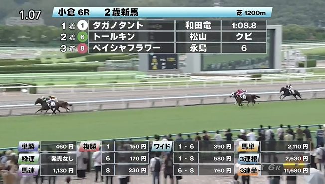◎タマモブラックタイ(6人気)1着 単勝1,430円、複勝270円 - 7/9【小倉8R】3歳以上1勝クラス
