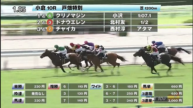 ◎アトミカ(5人気)2着 複勝320円 - 7/10【小倉12R】シンガポールターフクラブ賞