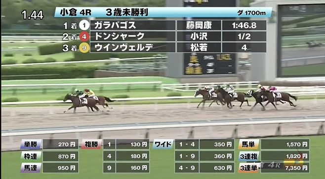 ◎ドンシャーク(5人気)2着 複勝180円 - 7/17【小倉6R】3歳未勝利