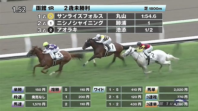 ◎ニシノシャイニング(5人気)2着 複勝200円 - 7/16【函館4R】3歳未勝利