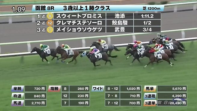 ◎スウィートプロミス(4人気)1着 単勝720円、複勝260円 - 7/16【函館10R】かもめ島特別