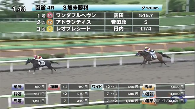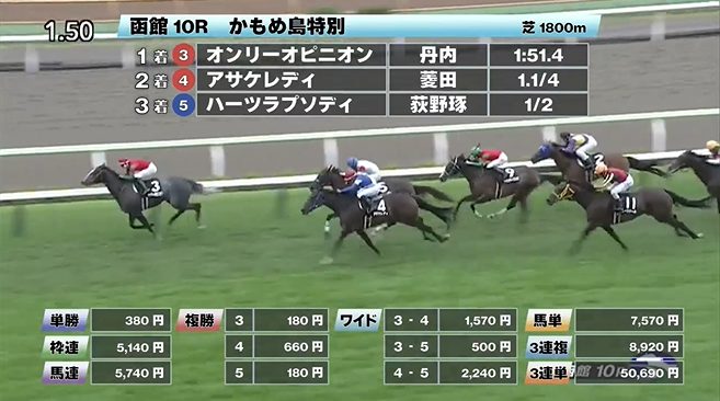 ◎バトーデュシエル(6人気)1着 単勝1,330円、複勝320円 - 7/3【函館10R】竜飛崎特別
