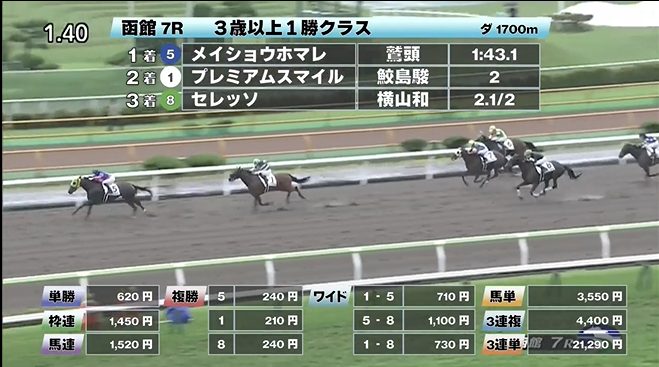◎ダノンフロンティア(6人気)2着 複勝460円 - 7/17【函館7R】3歳以上1勝クラス