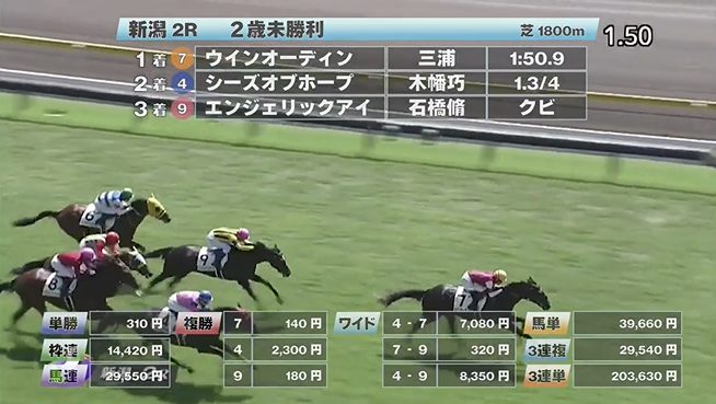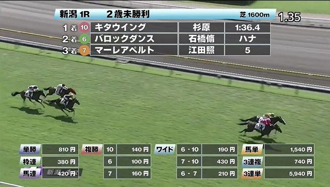 ◎キタウイング(3人気)1着 単勝810円、複勝140円 - 8/21【新潟2R】2歳未勝利