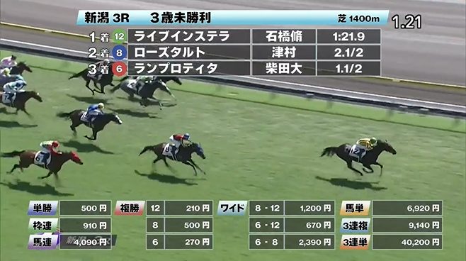 ◎ライブインステラ(2人気)1着 単勝500円、複勝210円 - 8/21【新潟4R】3歳未勝利
