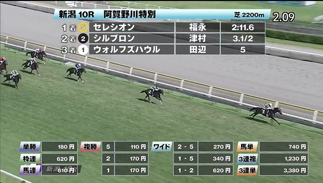 ◎リニュー(10人気)3着 複勝2,370円 - 8/21【新潟10R】阿賀野川特別