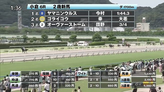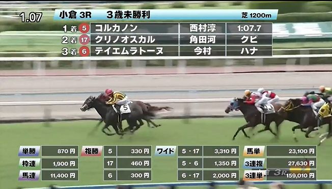 ◎コルカノン(5人気)1着 単勝870円、複勝330円 - 8/20【小倉6R】2歳新馬