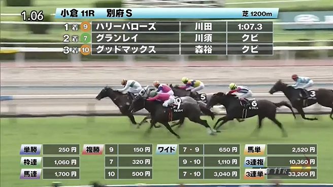 ◎ジョーリベリカ(10人気)2着 複勝550円 - 8/20【小倉11R】別府ステークス