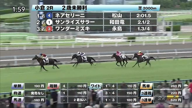 ◎ブライトオンベイス(6人気)1着 単勝750円、複勝240円 - 8/13【小倉2R】2歳未勝利