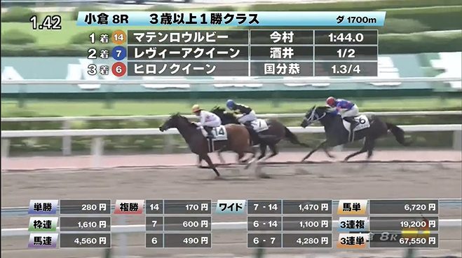 ◎ナリタローゼ(9人気)3着 複勝710円 - 8/21【小倉8R】3歳以上1勝クラス