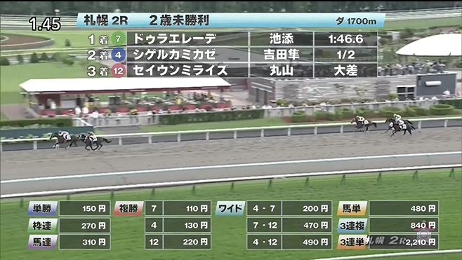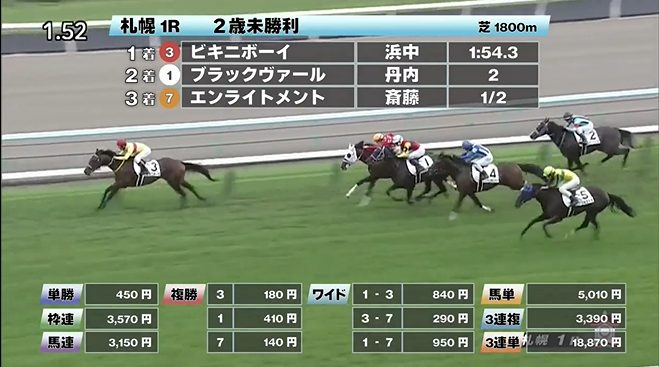 ◎セイウンガレオン(5人気)1着 単勝800円、複勝250円 - 8/7【札幌6R】3歳未勝利