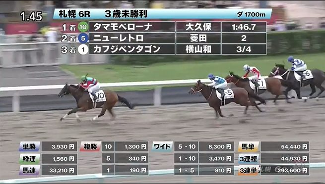 ◎タイセイフェイバー(5人気)1着 単勝1,050円、複勝220円 - 8/14【札幌6R】3歳以上1勝クラス