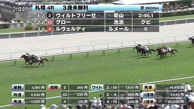 ◎ヴィルトブリーゼ(4人気)1着 単勝1,280円、複勝360円 - 8/21【札幌6R】3歳以上1勝クラス