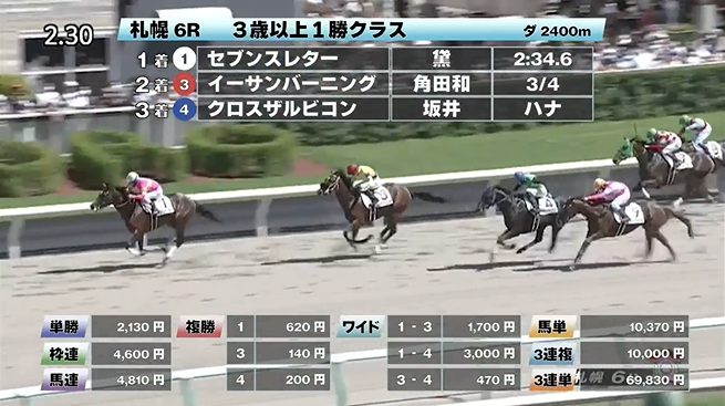 ◎サトノゼノビア(9人気)1着 単勝1,700円、複勝400円 - 8/7【札幌4R】3歳未勝利