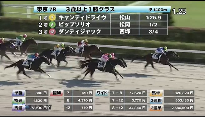 ◎キャンディドライヴ(3人気)1着 単勝840円、複勝410円 - 10/29【東京8R】3歳以上1勝クラス