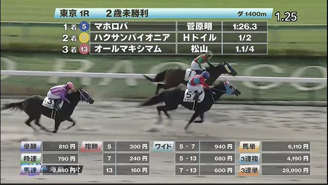 ◎マホロバ(5人気)1着 単勝810円、複勝300円