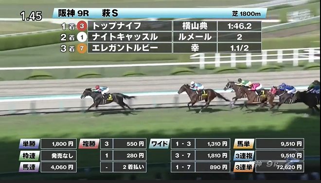 ◎ナイトキャッスル(3人気)2着 複勝280円