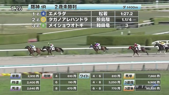 ◎エメラダ(7人気)1着 単勝2,910円、複勝610円
