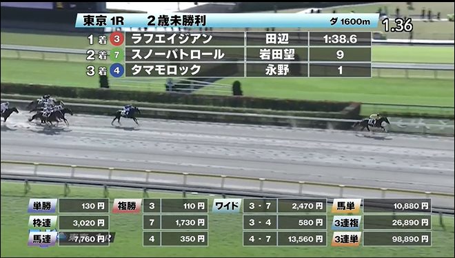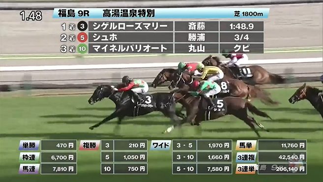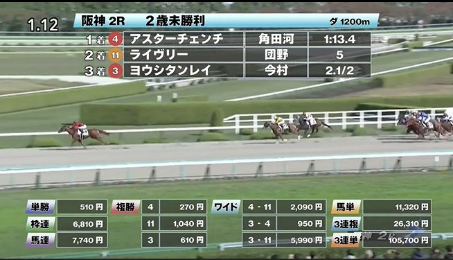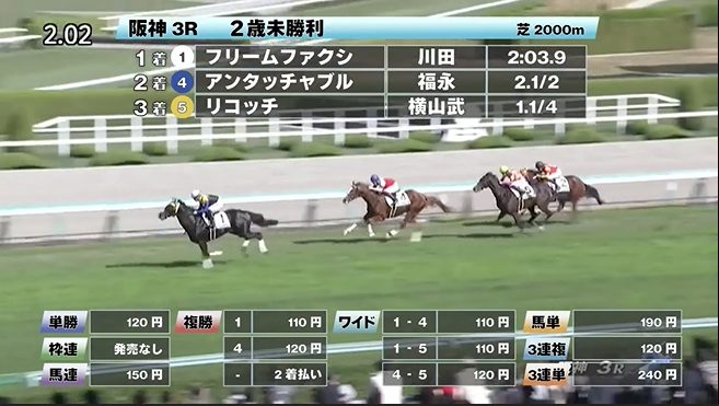 ◎アームブランシュ(3人気)1着 単勝450円、複勝110円