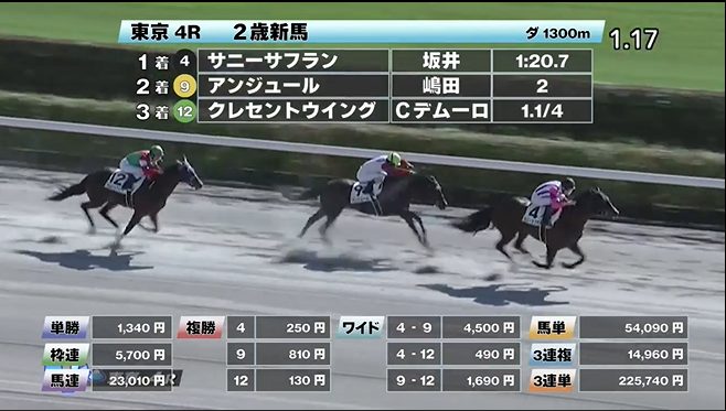◎サニーサフラン(4人気)1着 単勝1,340円、複勝250円