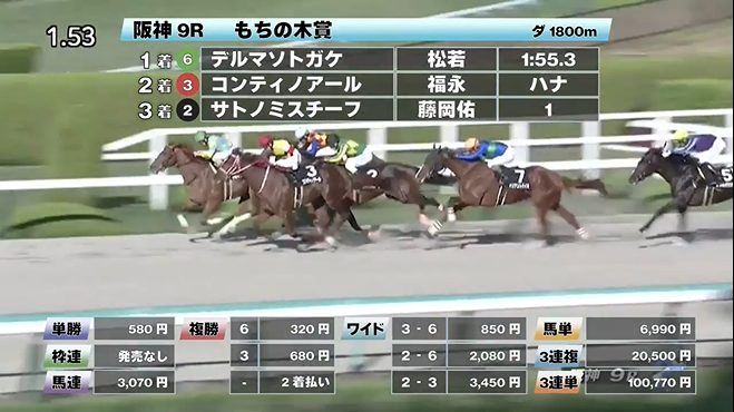 ◎デルマソトガケ(3人気)1着 単勝580円、複勝320円