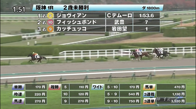 ◎ユアフラッシュ(5人気)1着 単勝870円、複勝220円