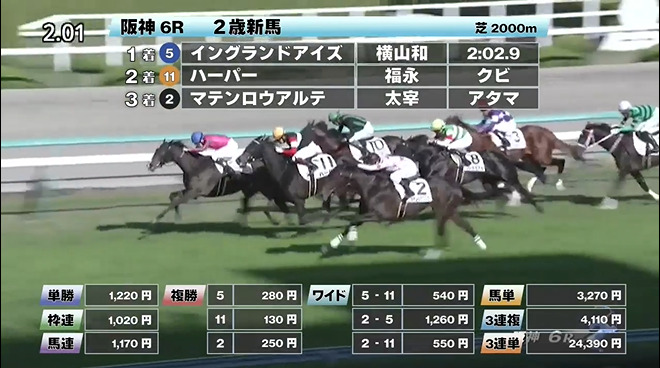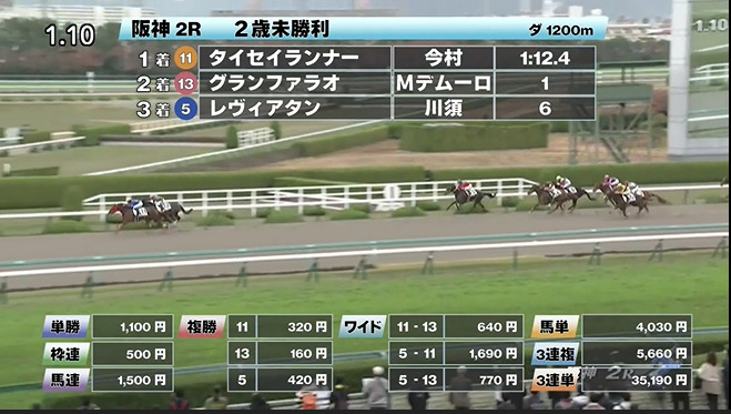 ◎タイセイランナー(6人気)1着 単勝1,100円、複勝320円 - 11/26【阪神6R】3歳以上1勝クラス