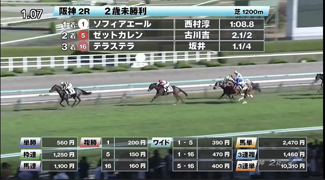 ◎ソフィアエール(4人気)1着 単勝560円、複勝200円 - 11/27【阪神6R】2歳新馬