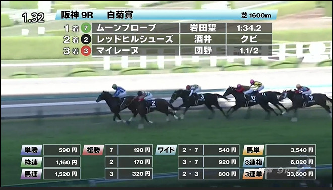 ◎ムーンプローブ(4人気)1着 単勝590円、複勝190円
