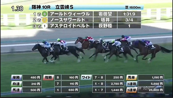 ◎ムーンプローブ(4人気)1着 単勝590円、複勝190円 - 11/27【阪神10R】立雲峡ステークス