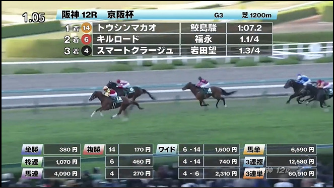◎デルマソトガケ(3人気)1着 単勝580円、複勝320円 - 11/6【阪神11R】みやこステークス