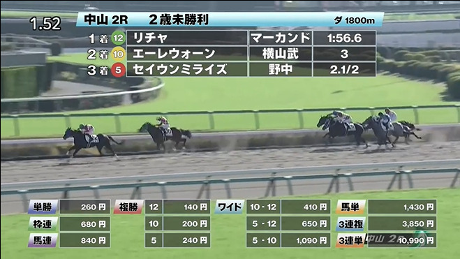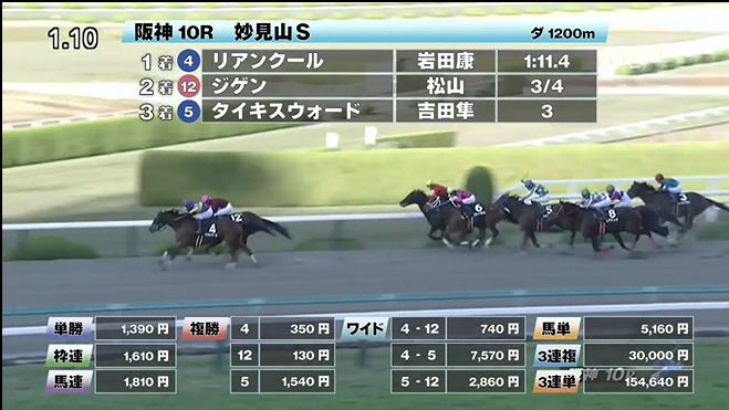 ◎リアンクール(6人気)1着 単勝1,390円、複勝350円